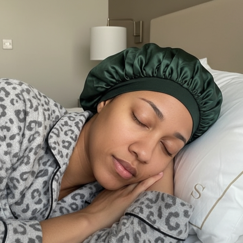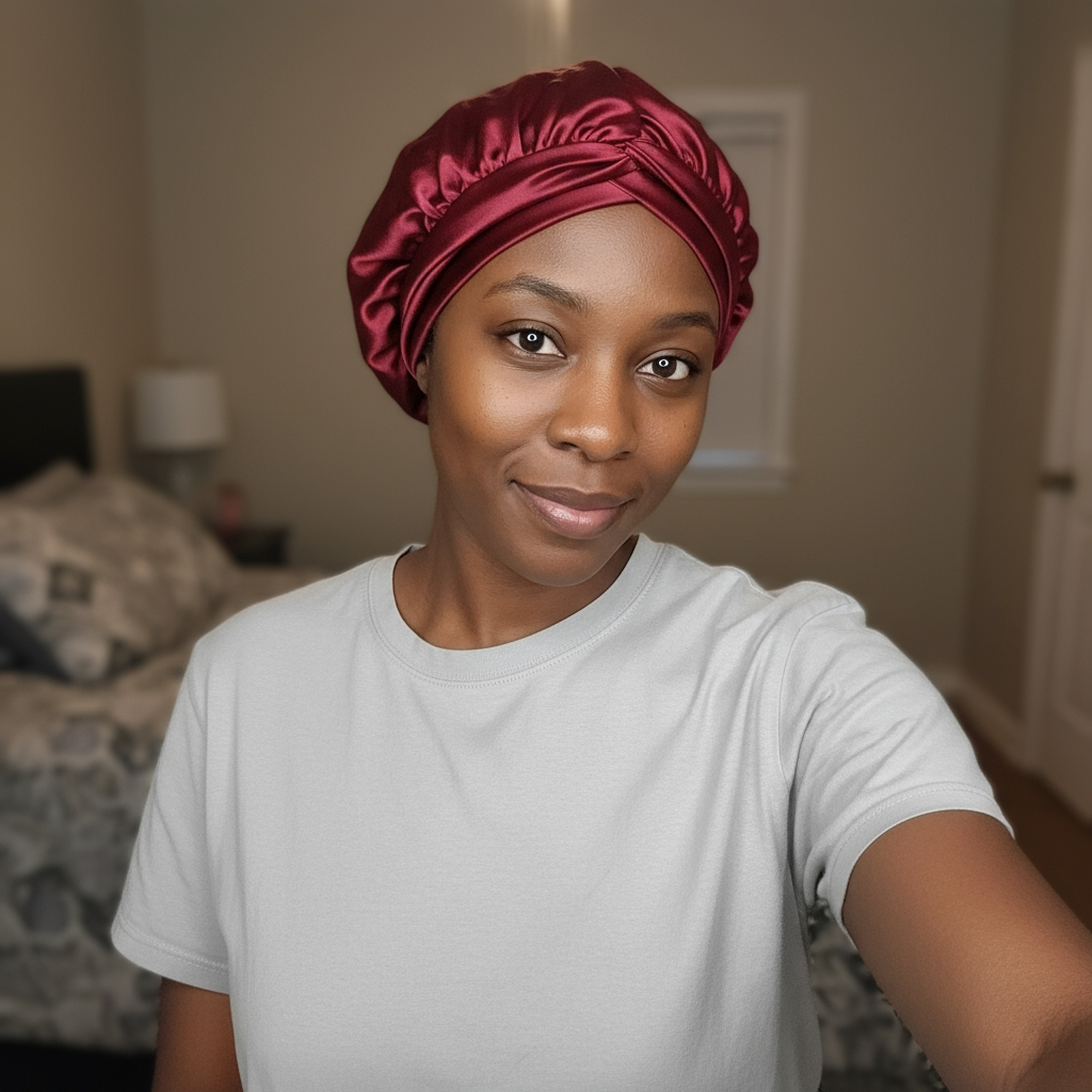 Say goodbye to frizz, tangles, and dull mornings. Our 100% Mulberry Silk Bonnet protects your hair overnight — keeping it smooth, shiny, and perfectly styled. Treat your hair to the luxury it deserves and experience the difference tonight.